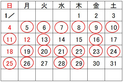 1月開所予定日