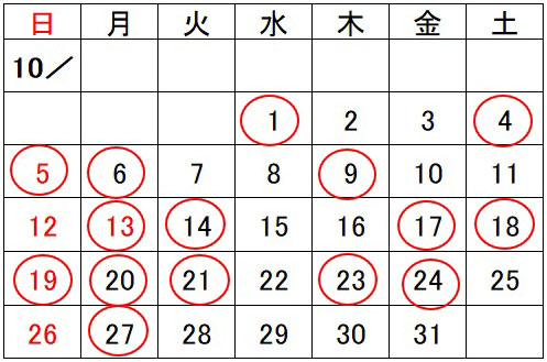 10月開所予定日