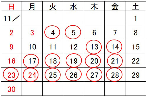 11月開所予定日