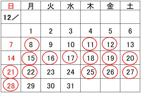 12月開所予定日