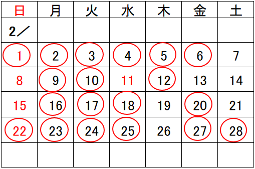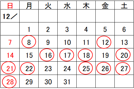 年末年始休み (12月29日~1月3日) の他、不定期開所となります。下表の「開所日カレンダー」でご確認ください。